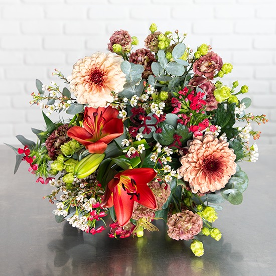 Dit boeket, tegelijk gestructureerd en intens, is een eerbetoon aan zijn stabiele en vastberaden energie. De bloemen met diepe tinten, warme texturen en zorgvuldige opbouw roepen de stevigheid, adel en innerlijke kracht op die zo kenmerkend zijn voor de Steenbok.