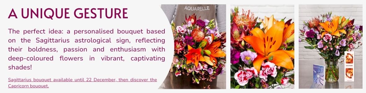 Each month, let yourself be inspired by a floral creation designed especially for the zodiac sign in focus. A collection where stars and flowers meet, celebrating the unique energy of every astrological sign.